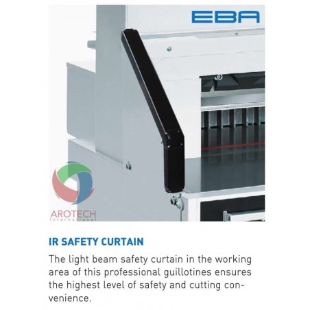 The eba 551 guillotine has all the features of the 550 but has an electronic photocell safety guard the eba 551 guillotine includes a hydraulic precision drive for blade and clamping, electronically.